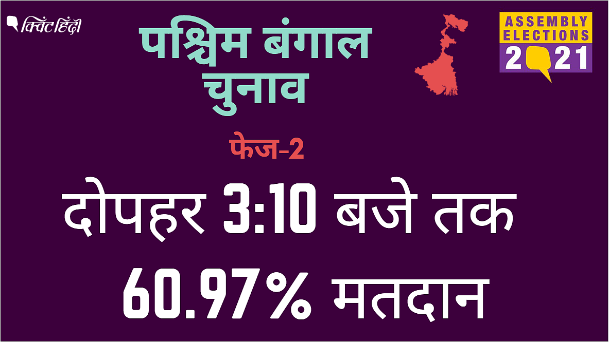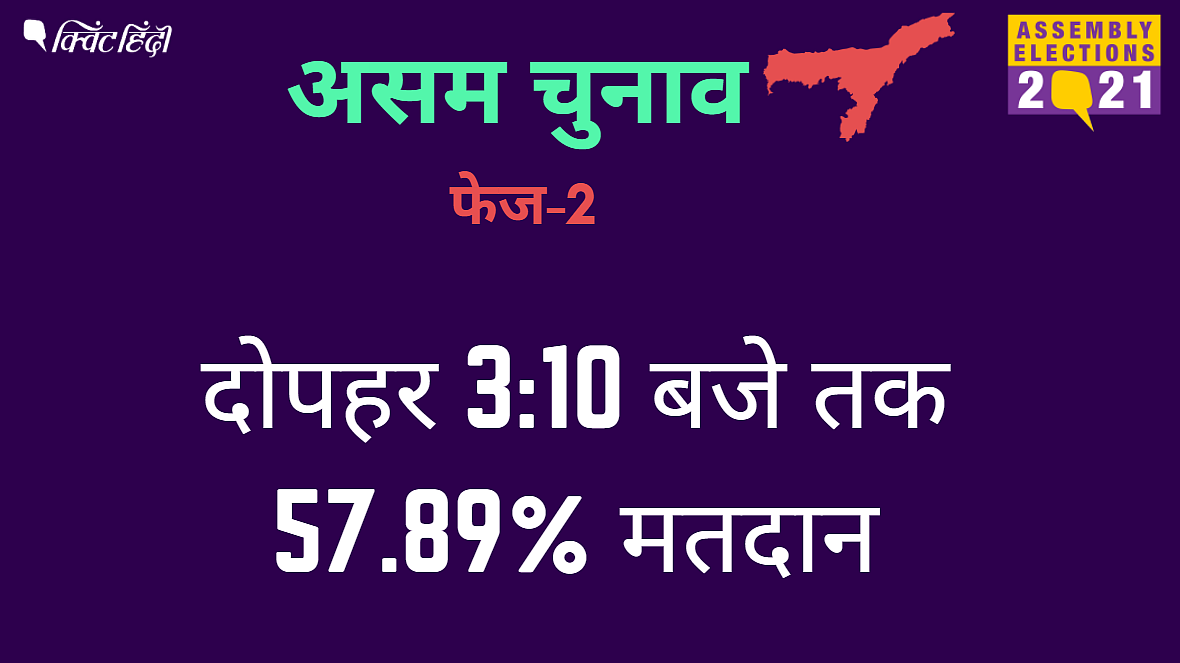 चुनाव आयोग के मुताबिक विधानसभा चुनाव के दूसरे चरण में दोपहर 3:10 बजे तक असम में 57.89% और पश्चिम बंगाल में 60.97% मतदान हुए हैं